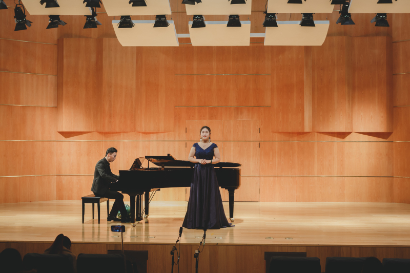 音乐会在一首《玫瑰三愿》中拉开序幕。利用和声,伴奏将淞沪之战后触景伤情的感情表达的淋漓尽致。接下来,由杜永涛给大家带来的《为你歌唱》,旋律的循序渐进,歌词中所阐述的情感,配合着琴音,唱出了感性的情韵音符,今夜,他为亲人为挚友为老师歌唱,给在场观众带来了一场丰富的视听盛宴。紧接着,由杜永涛,王龄带来的《相对无言》,两人相互配合默契十足,娴熟的演唱方法,独特的曲调,将歌剧中所表达的情感纠葛映入在观众眼帘,触动在场观众的听觉。最后,一首男生合唱的《往日时光》,唱出了真挚的同学感情,唱出了对即将毕业的不舍,触动了台下的观众,场上想起雷鸣般的掌声,音乐会也随之落幕。