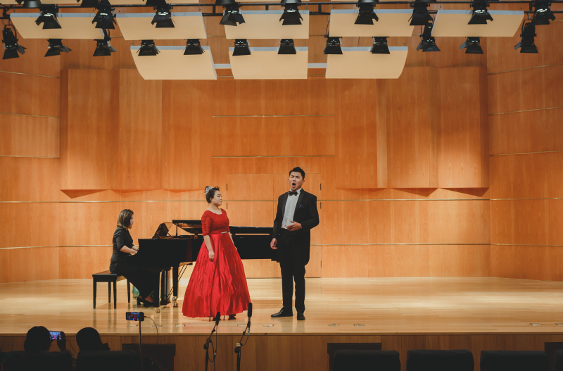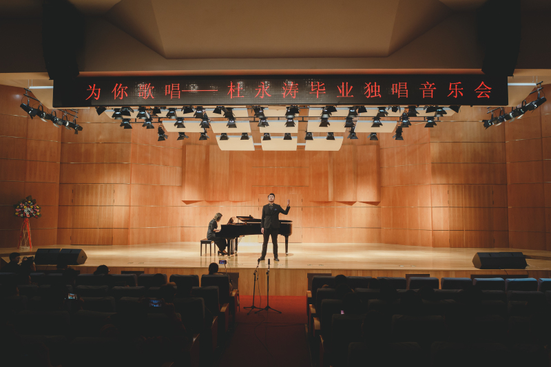 2018年12月19日晚,杜永涛“为你歌唱”毕业独唱音乐会于韶乐厅精彩上映。太阳成集团tyc234cc经理邹淑珍,党总支书记王少波、副书记刘善平以及太阳成集团tyc234cc部分教师出席了本场音乐会。特邀嘉宾王天赐,封美含作为艺术指导。