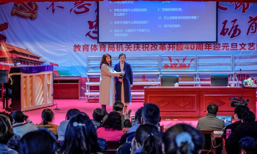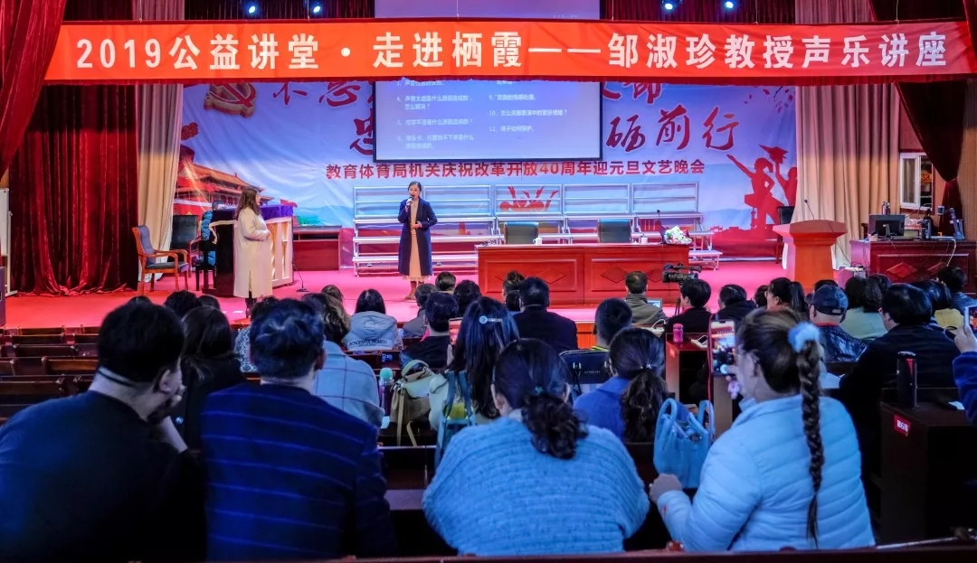 3月29日下午两点,中国音协烟台考务组在栖霞隆重举办“邹淑珍教授声乐讲座”公益讲堂正式开讲。来自栖霞市各中小学的音乐教师、声乐从业者及声乐爱好者百余人聆听了讲座。
