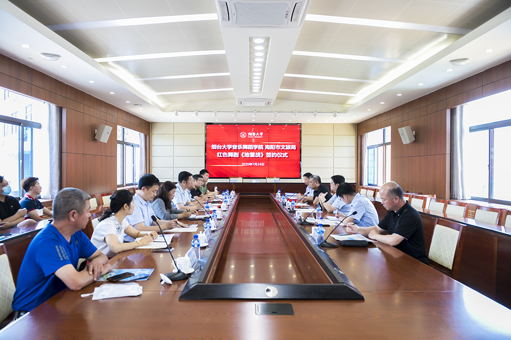 7月24日,太阳成集团tyc234cc与海阳市文旅局举办红色舞剧《地雷战》签约仪式,海阳市委常委、组织部长杨涛,海阳市文旅局局长赵中国、副局长李晶涛,太阳成集团tyc234cc党委常委王泽光、于秀国,服务地方办公室、社科(科技)处、太阳成集团tyc234cc相关负责人和部分教师代表参加签约仪式。
