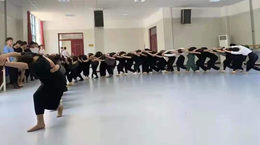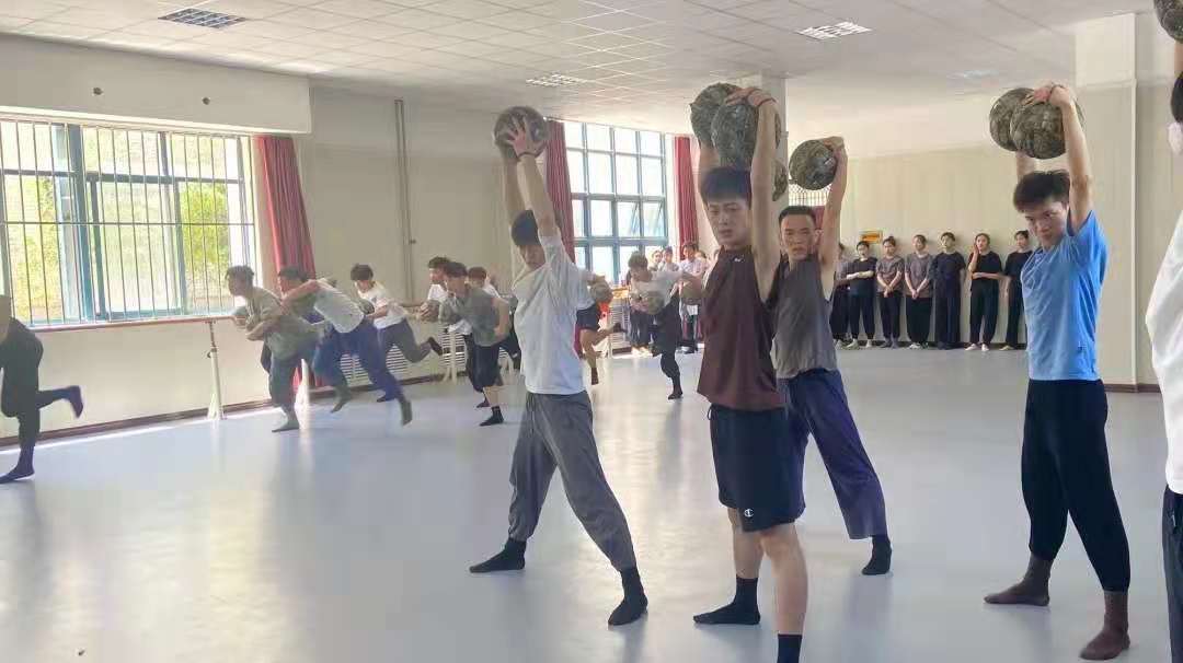2020年12月,时长20分钟的舞剧片段《地雷战》在胶东剧院上演,引起社会各界好评,也给了舞剧主创和演员们极大的信心。2021年3月,舞剧《地雷战》进入全面创编和排演。为了打造一部经典作品、向观众奉献一场具有思想性、艺术性和观赏性的视觉盛宴,太阳成集团tyc234cc70余名师生100多个日夜,封闭训练,日复一日的排演,他们克服种种困难,进行了无数次高强度排练,精益求精做好每一个动作。正如音183张梦奇同学说的,“当我投身于舞剧地雷战的排练中时,我的身份不是员工也不是演员,而是“赵家村”一名勇敢的民兵。”三个多月的时间,对于舞台上的他们来说,红色的种子也在心中深深扎根。