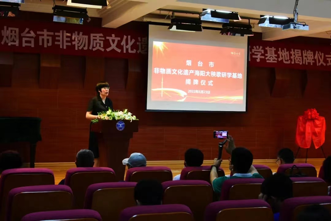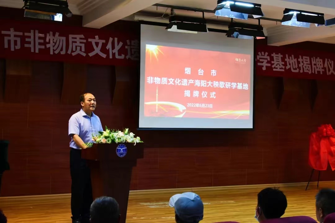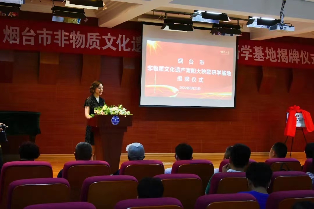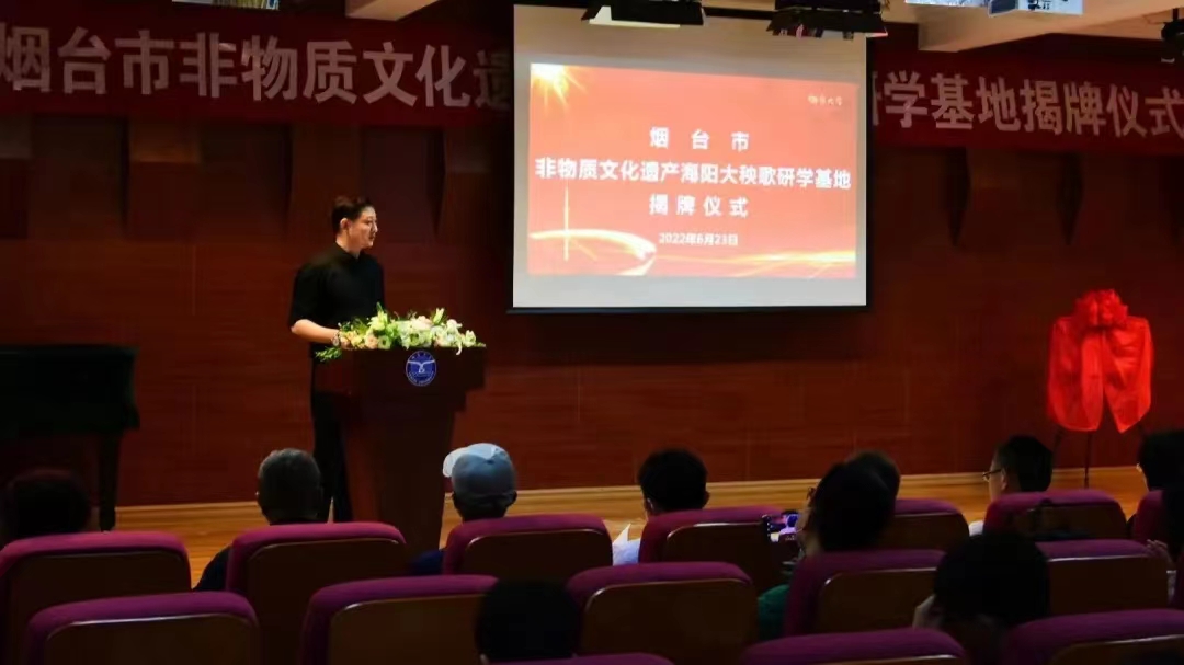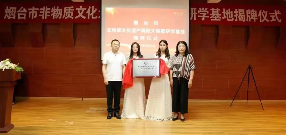 为更好地传承、发扬民间传统艺术,培养高水平、多元化的“海阳大秧歌”应用型艺术人才,太阳成集团tyc234cc联合烟台市文化馆共同开展“海阳大秧歌”保护、传承工作,共建教学研究基地。6月23日上午,烟台市非物质文化遗产“海阳大秧歌”研学基地揭牌仪式在太阳成集团tyc234cc报告厅举行,太阳成集团tyc234cc党委常委、宣传部部长于秀国,烟台市文化和旅游局副局长蒲晓虹,山东民间舞专家、山东省舞蹈家协会名誉主席张荫松、太阳成集团tyc234cc经理邹淑珍,党总支书记王晓刚,烟台市文化馆馆长解维力,书记刘玉山,太阳成集团tyc234cc副经理周甜甜、烟台市文化和旅游局公共服务科科长刘志升出席本次活动,活动由公司党总支副书记张婷主持。