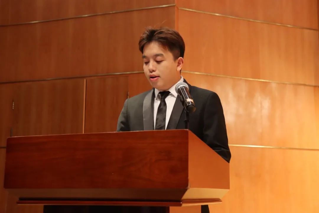 在校生代表唐钰钧分享了大学学习与生活体会,他提到,大学阶段,我们要充分利用公司给我们提供的资源和机会,在不断地尝试中认识自己,找到自己喜欢什么、自己擅长做什么、从而进一步思考自己未来想要做什么,要走哪条人生道路。