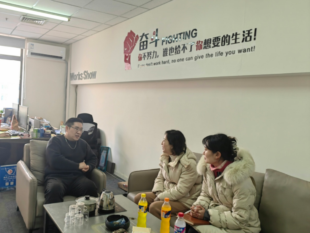 1月9日,公司党总支副书记张婷一行,前往猫十二(烟台)影视传媒有限公司,开展访企拓岗活动,就员工实习、就业开展调研交流。