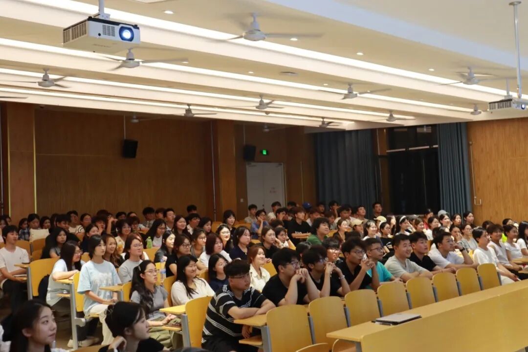9月13日晚,新生入学见面会在南校区教学楼举行。辅导员许鑫浩为新生详细介绍了后续入学安排,帮助大家明晰校园生活的时间线,为即将展开的老员工活做好充分准备。员工导助以学长学姐的身份,亲切分享校园生活的实用经验与小贴士,让新生们倍感温暖,也对未来多了几分踏实与憧憬。