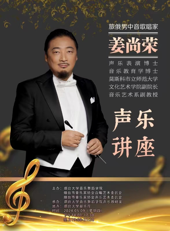 姜尚荣,旅俄男中⾳歌唱家。多次国际声乐⽐赛获奖者,声乐表演博士,音乐教育学博士,莫斯科市立师范大学⽂化艺术公司副院⻓、⾳乐艺术系副教授,美声演唱⽅向硕士项目带头⼈。莫斯科国⽴苏达科夫交响合唱团独唱演员。