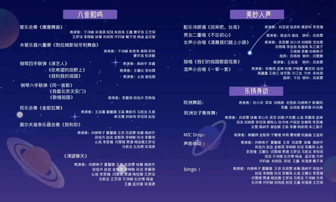 音乐会在曲目编排上不仅进一步延申了课堂教学的内容,也将课程内容和知识点融会贯通,体现了新文科建设的交融的特点;本场音乐会还将音乐元素与舞蹈元素有机地结合起来,从宏观上尝试专业之间的交叉融合,为培养国际化的创新人才提供了实践参考;本场音乐会还将听觉、视觉、动觉结合起来,从音乐认知多向度带动多重感官活动来体验和表达音乐,以达到真正的以美育人、以文化人的全人教育目标。