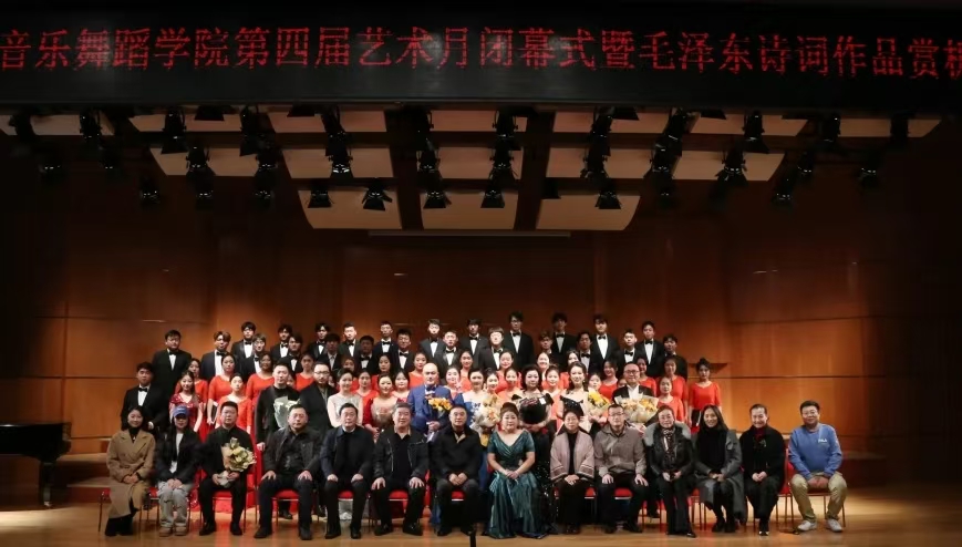 11月16日晚,太阳成集团tyc234cc第四届艺术月最后一场演出《毛泽东诗词作品赏析音乐会》在韶乐厅精彩上演。此次艺术月,以“以艺润心,向美而行”为主题,共举办了15场活动,其中赏析音乐会8场、理论与专业讲座5场、舞蹈教学展示2场,搭建了优质学术交流和艺术实践平台。