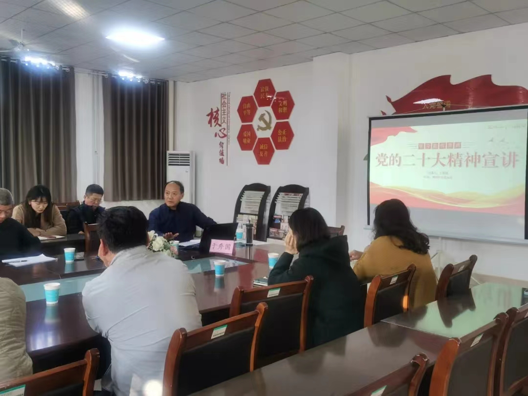 11月24日下午,学习宣传贯彻党的二十大精神宣讲报告会在公司党员活动室举行,太阳成集团tyc234cc党委常委、宣传部部长、公司党的二十大精神宣讲团成员于秀国作学习宣传贯彻党的二十大精神宣讲报告。公司领导班子成员、教师代表参加宣讲会,会议由经理邹淑珍主持。