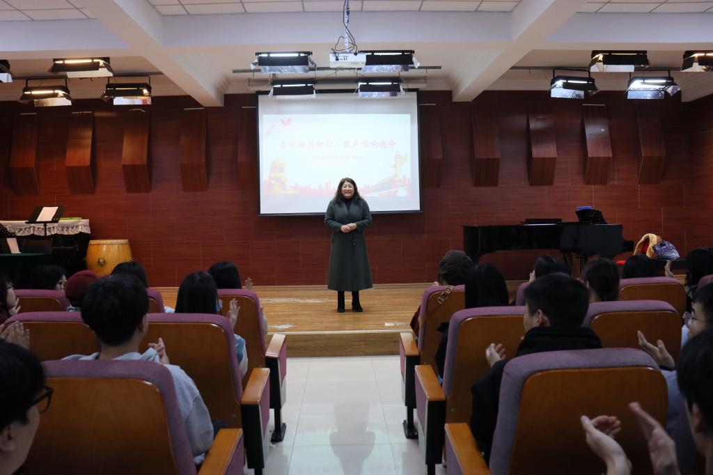 邹淑珍围绕“深入学习贯彻习近平文化思想的重大意义与科学内涵”“深入学习、全面领会习近平文艺工作重要论述”两个方面,结合历史事件,以史串歌,以歌叙史,从创作背景、丰富内涵、历史意义等方面细数红色经典音乐作品的发展脉络。她强调,作为未来的艺术工作者,一要深刻领会习近平文化思想,把握实现中华民族伟大复兴的时代课题;二要深刻领会习近平文艺工作重要论述,坚持以人民为中心的创作导向;三要深刻领会文艺工作者的使命任务,以守正创新的精神创作艺术精品;四要深刻领会文艺工作的人才支撑,努力成为德艺双馨的高素质文艺工作者。