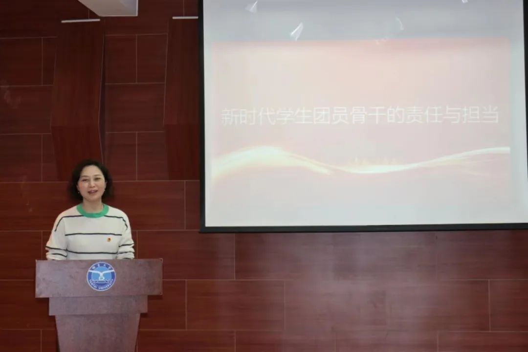 党总支副书记张婷以《新时代员工团员骨干的责任与担当》为题为青马班学员带来开班第一课。她详细解读了员工团员骨干的角色定位、责任与担当,对如何在实际行动中诠释责任与担当提出了四点希望:一是坚定政治立场,加强理论学习;二是勇担实践先锋,践行服务初心;三是培养创新思维,提高解决问题的能力;四是牢记使命在肩,勇于担当责任。在讲话最后,张婷书记勉励青马班学员,在深学笃行中补齐短板,提升能力,以高度的责任感和使命感投入到公司团学工作中,努力成为“可堪大用能担重任的栋梁之材”。