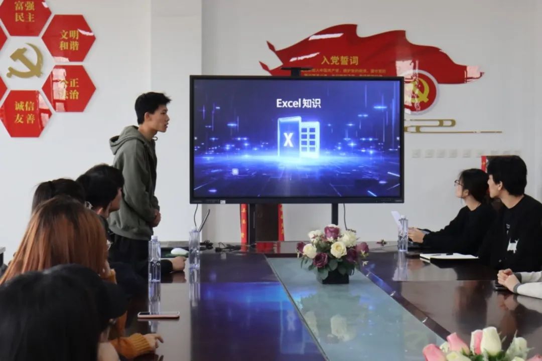 交流会中,山东工商公司数院员工代表详细介绍了如何运用Word、PPT、Excel等办公软件。Word部分为大家介绍了如何自动生成目录、创建分级标题、页眉页脚设置等实用技巧,并通过一个小练习让同学们进行了具体实操。PPT部分则讲解了幻灯片创建、模板选择、动画效果使用等技巧,使演示文稿更加生动。Excel操作重点介绍了数据输入、函数计算(如SUM、AVERAGE)以及图表创建,帮助同学们更好地处理和分析数据。