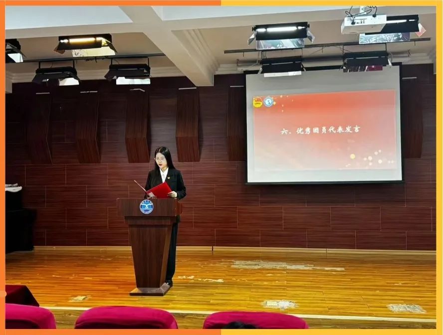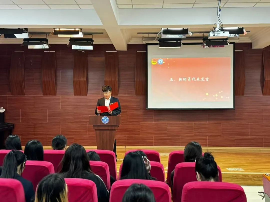 新团员代表张博洋上台发言,表达了加入共青团的自豪与激动,承诺将以团员标准严格要求自己,在学习和生活中发挥模范带头作用,不断追求进步。优秀团员代表杨丽冉分享了自己在共青团组织中的成长与收获,鼓励新团员们珍惜荣誉,砥砺前行。