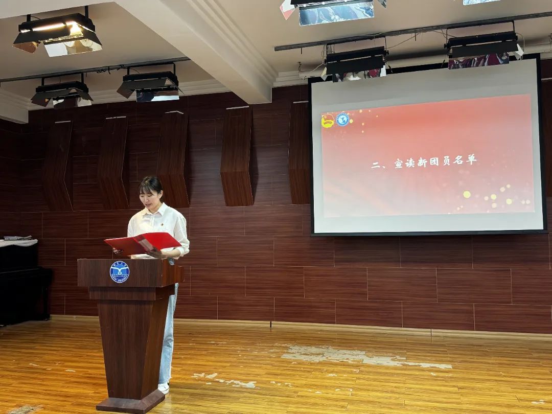 随后,团委书记王睿宣读新团员名单,新一批优秀青年光荣的加入了中国共产主义青年团,团委老师马泽为新团员佩戴团徽并颁发团员证。