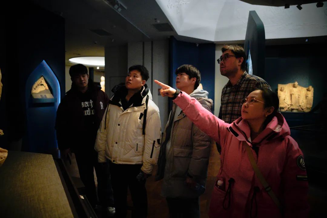 次日,实践队走进青州博物馆,通过参观学习大家深刻了解了青州悠久的历史脉络和深厚的文化底蕴,同时也对博物馆内与音乐相关的历史文物进行了研究学习,还就如何保护传承非遗文化进行了深入交流探讨。