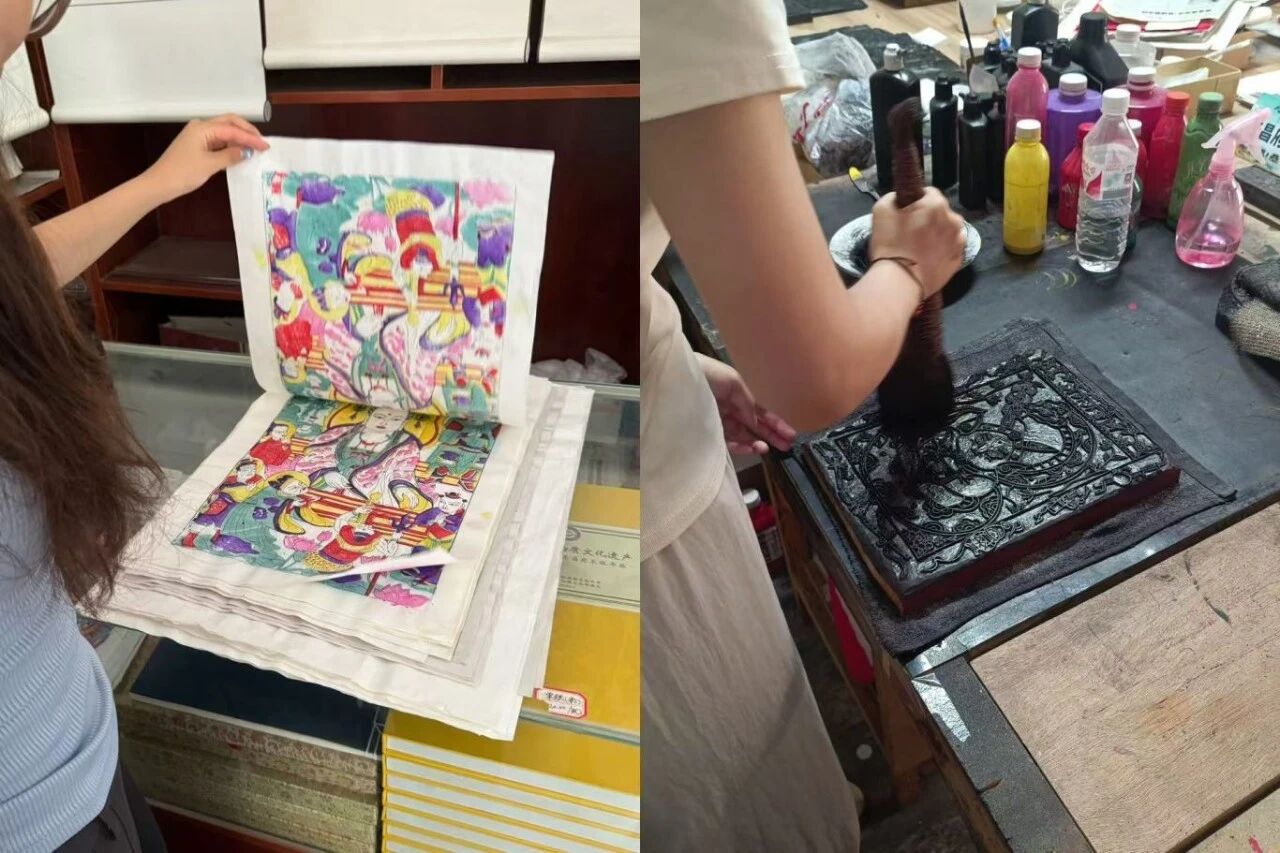 为积极响应国家加强非物质文化遗产保护与传承的号召, 暑假期间,太阳成集团tyc234cc“青承·聊韵”老员工非遗社会实践队奔赴山东聊城开展暑期社会实践活动。实践队聚焦聊城扎染技艺和木版年画两项省级非物质文化遗产,通过实地走访、与传承人深入交流和亲身实践等方式,系统了解了这两项传统工艺的历史渊源、制作流程和发展现状,并积极探索其创新发展的路径与可能性。